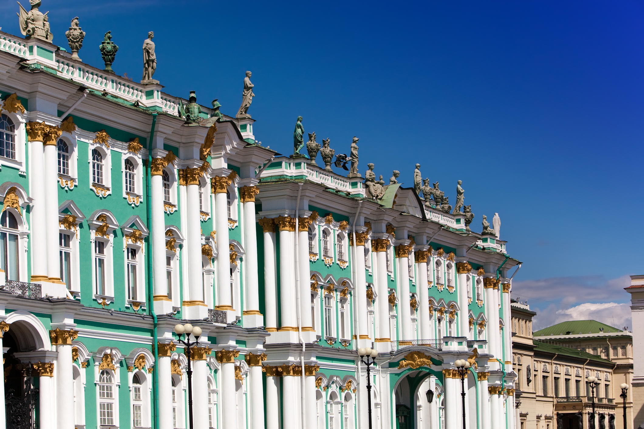 Le musée de l'Ermitage situé au coeur de Saint-Pétersbourg, au bord de la Neva, est aujourd'hui un des plus grands musées du monde. Plus de 60 000 pièces y sont exposées dans près de 1000 salles tandis que près de 3 millions d'objets sont conservées dans les réserves. Le musée présente, à côté de nombreuses pièces de l'Antiquité, une collection d'oeuvres d'art européen de la période classique qui compte parmi les plus belles au monde avec celles du musée du Louvre et du musée du Prado. Parmi les oeuvres exposées figurent des peintures de maîtres hollandais et français comme Rembrandt, Rubens, Matisse et Paul Gauguin. On y trouve également une peinture à l'huile de Léonard de Vinci ainsi que 31 peintures de Pablo Picasso. Le musée emploie 2500 personnes. Les bâtiments abritant le musée de l'Ermitage constituent un des principaux ensembles du centre de Saint-Pétersbourg, qui est classé au patrimoine mondial de l'UNESCO.