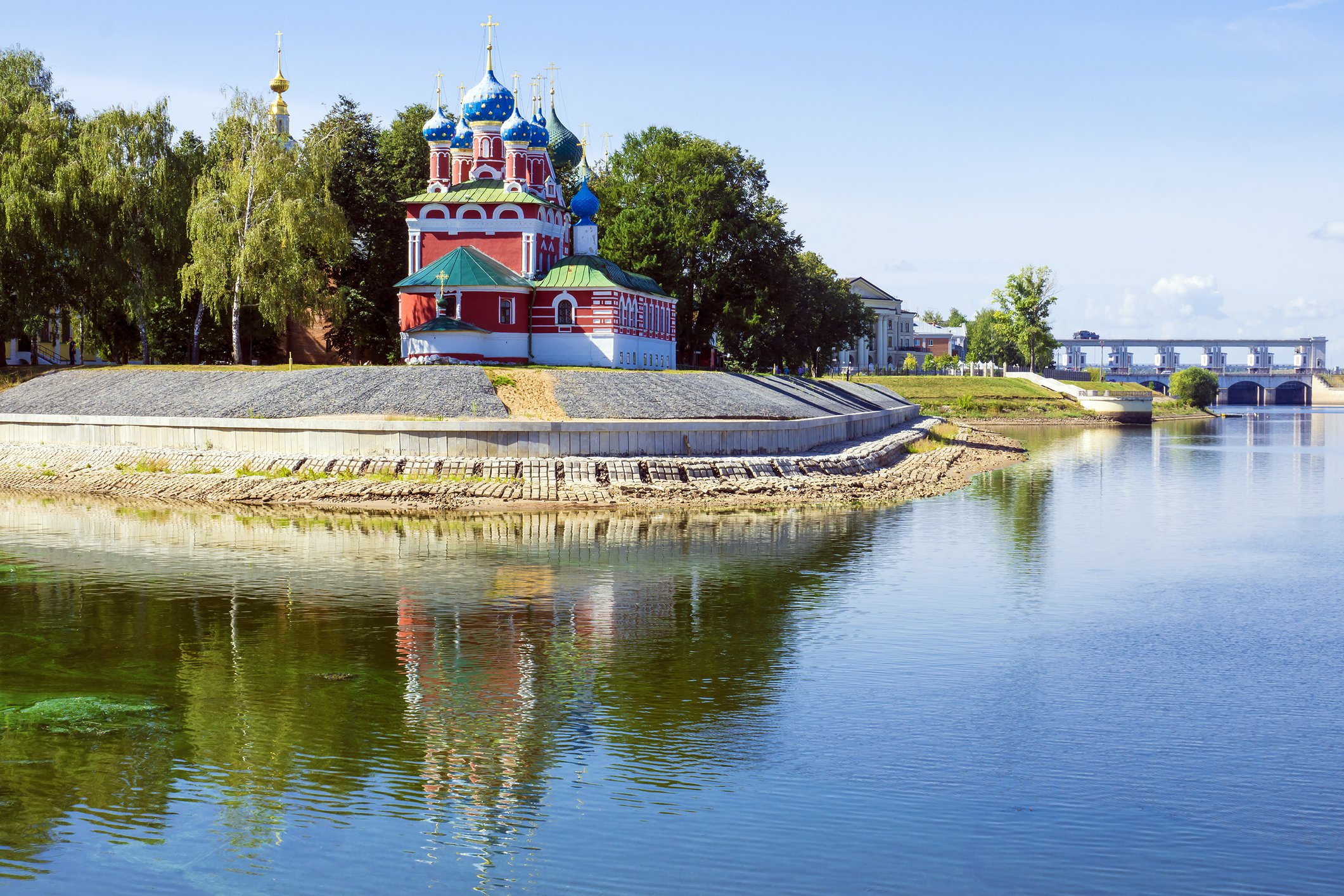 L'existence d'Uglich est mentionnée depuis l'année 937. Elle compte 35 900 habitants et fait partie de l'anneau d'or de Russie, constitué par plusieurs villes princières, situées autour de la capitale russe et qui possèdent de superbes ensembles architecturaux. Vous pourrez ensuite admirer visiter l'Église St-Dimitri-sur-le-Sang-Versé, construite à l'endroit même où, selon la légende, le Tsarévitch Dimitri a été tué. Le 25 mai 1591, le tsarévitch Dmitri Ivanovitch, encore enfant, y trouve la mort dans des circonstances troublées, certains soutenant qu'il se serait tué au cours d'une crise d'épilepsie tandis qu'une légende attribue cette mort à Boris Godounov. Cet évènement fut pour la Russie le début de la période dite du « temps des troubles » au cours de laquelle le pouvoir fut âprement disputé avant l'accession au trône de la famille Romanov.
